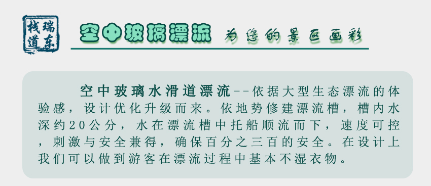 我公司為國(guó)內(nèi)首條玻璃滑道設(shè)計(jì)施工單位,擁有十余年經(jīng)驗(yàn),專(zhuān)業(yè)設(shè)計(jì)承建、投資運(yùn)營(yíng)景區(qū)花崗巖滑道、玻璃滑道、水滑道漂流、大型生態(tài)漂流、玻璃吊橋、棧道等項(xiàng)目。聯(lián)系電話(huà):18032092866(微信號(hào)同電話(huà))