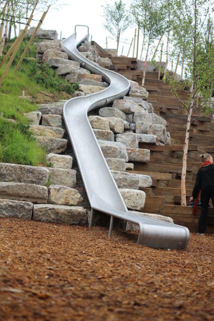Outlook Hill是4座山中最高的,接著就是Grassy Hill、Discovery Hill 和Slide Hill,從7.9米到11.8米(26英尺到39英尺)不等。每座山部分建在被拆毀建筑和停車場(chǎng)的殘片上。除涂上一層表土,Mathews Nielsen Landscape Architects事務(wù)所還種植了本土或適應(yīng)當(dāng)?shù)厣a(chǎn)的植物種類——54種,包括4.3萬灌木和3000棵樹木,解決該海港的鹽水問題。